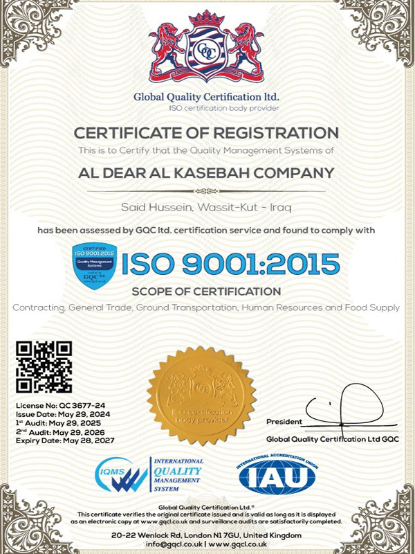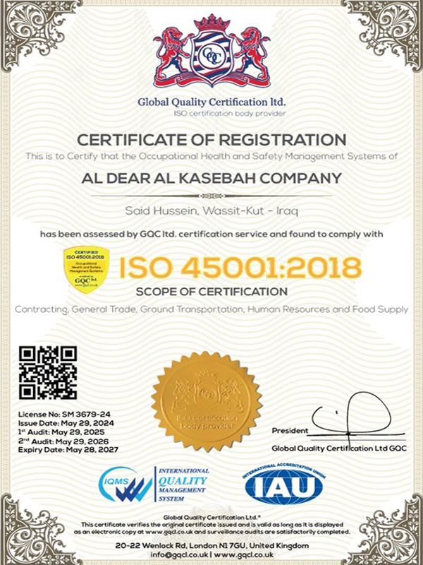 We are pleased to express our desire and readiness to cooperate with you in implementing all projects according to technical specifications, as well as our readiness to provide you with all your needs of materials, tools and furniture from the best known international origins, hoping to participate in the campaign to rebuild Iraq. We are confident that you will find all your demands with us, looking forward to our joint work in future projects.